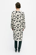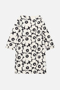 Description: The Piata cotton jersey dress has an oversized, straight fit, and it features the Unikko pattern. The dress has a boatneck with a wide printed rib and long, loose sleeves, which are finished with wide self-fabric ribbons.