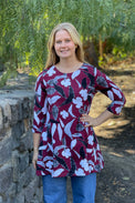 Description: Love me Love me not print Pisara tunic. Scoop neckline. Three-quarter sleeves and side pockets. Timeless and modern tunic you can enjoy for many years.