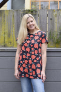Description: A-line tunic in Tulips design. Scoop neckline. Short Sleeves. Timeless and modern tunic you can enjoy for many years.