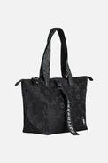 The main material of this product is 100% recycled polyester. The inner lining and the handle straps are made of 100% recycled polyamide. The bag features recycled leather details.