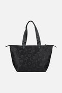 Description: The Tote M shoulder bag features the jacquard knit Unikko pattern. The spacious bag has a zipper closure and handles, and it can fit a laptop inside. The inside is lined, and it has one slip-in pocket. The front features the Marimekko logo label and the Marimekko keystrap that is attached with a D-ring.