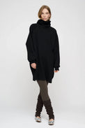 Description: Beautiful oversized sweatshirt dress in black with a high collar, long sleeves, and a relaxed, comfortable fit. The dress comes in one size. Note the subtle side slits for ease of movement.