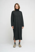 Description: Perfectly onesize, throw on dress, in beautiful soft knitted merino wool . A soft essential for chilly days and nights. The style has a loose fit with high neck and long sleeves. Onesize.