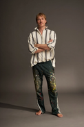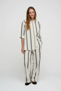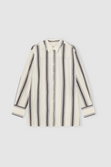 Description: Simple shirt in a relaxed fit with a classic collar and full button closure. The hirt has wide and narrow decorative stripes. Note the feminine pleat detail at the back, creating a beautiful drape. The shirt features slightly voluminous sleeves and wide cuffs with decorative button closures. The shirt is made from certified organic cotton poplin. This certification ensures organic origin and that the material is processed both environmentally and socially responsibly.