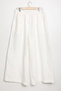 Description: Wide and comfortable linen culottes have side pockets and elastic waist. Medium weight linen is stonewashed and feels soft.