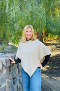 Description: Easy to throw on over any top or dress. This asymmetrical piece is a must-have for your modern wardrobe. Ella poncho is lightweight and easy to carry on purse or bag as well.