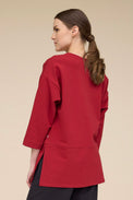 Description: Classic Amalia tunic is elegant and it might become your favorite shirt to wear. It has crew neck and 3/4 sleeves. The material is high-quality interlock cotton jersey knit which is smooth and structured. Falls on hips and both sides has slits.