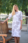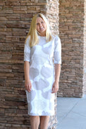 Description: Fitted and 3/4 sleeves. Comfortable, soft material. Wear with sandals or heels. Color is white/clay.