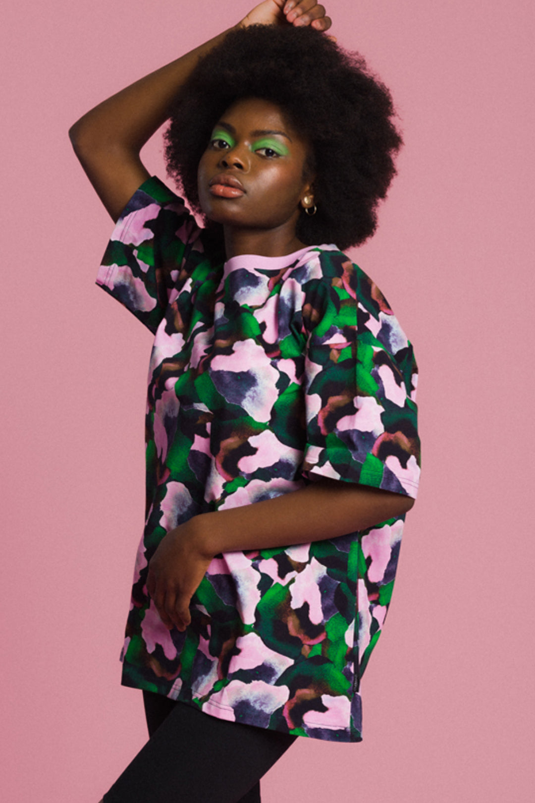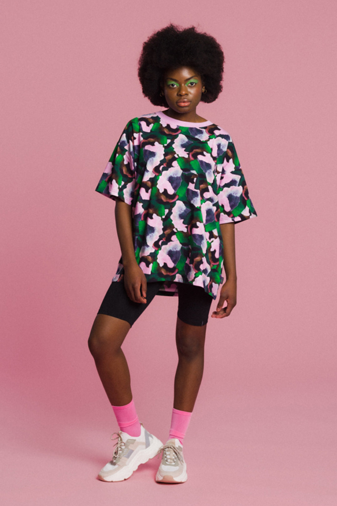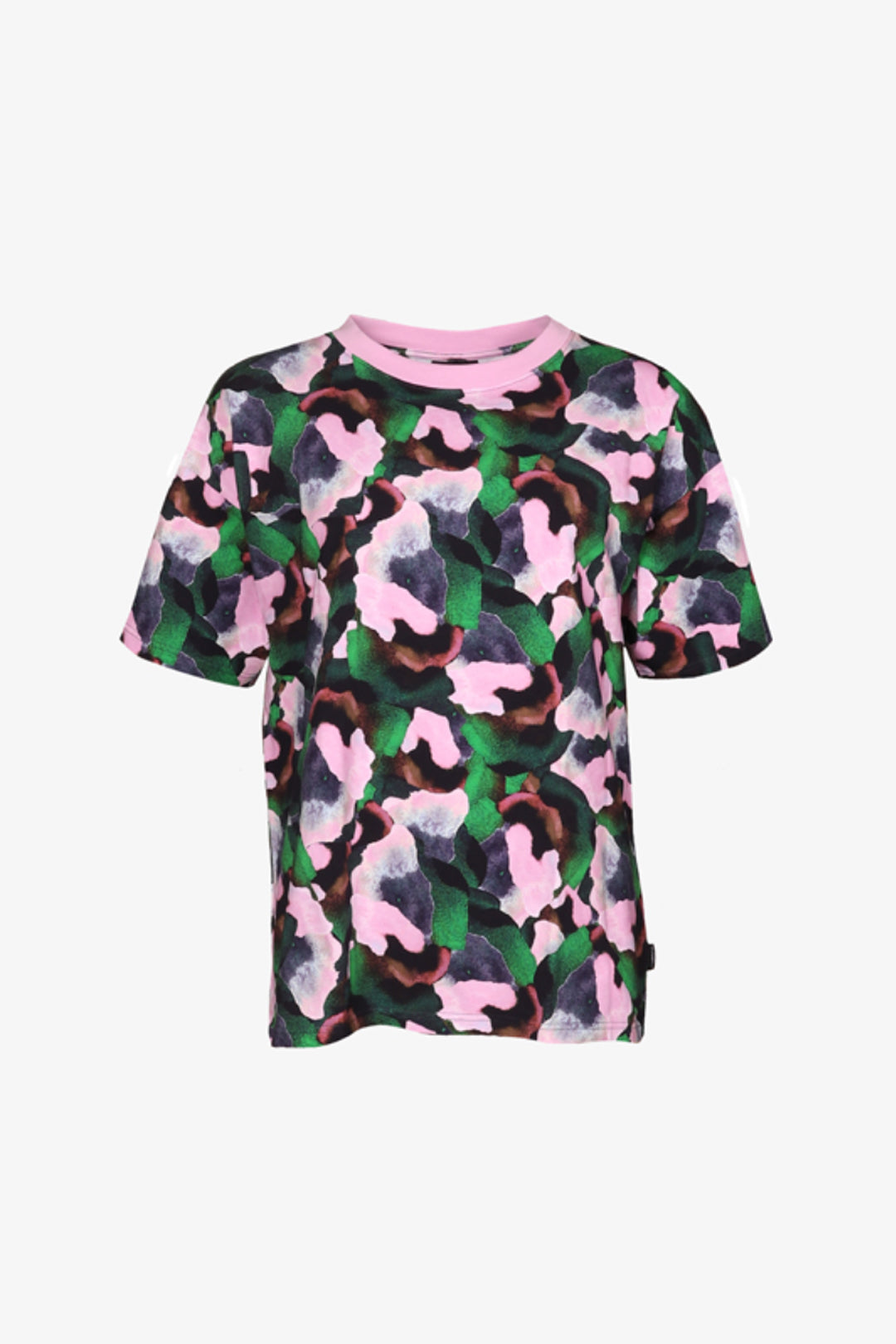 Description: Women’s t-shirt with beautiful Orvokki pattern. This versatile shirt is easy to combine with jeans, skirts and trousers, and colourful Orvokki pattern makes your outfit more vibrant! Combine with straight trousers and ankle boots for more official look, or wear with jeans and sneakers for leisure time. Organic cotton jersey is comfortable to wear and easy to take care of. Box shaped loose fit model with round neckline and short sleeves.