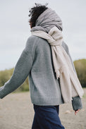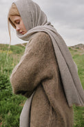 Description: “Tula tuulan tuli tuli tei” goes part of an old Finnish folk song. TUULA is an airy wool scarf, light as a gust of wind. It envelops you in its gentle embrace like a mother with her cub. The scarf is decorated with a delicate, lace-like pattern.