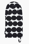 Description: This heavyweight cotton oven mitten is padded, ambidextrous and has a hanging loop. Pattern is Maija Louekari's pattern inspired by rag rugs.