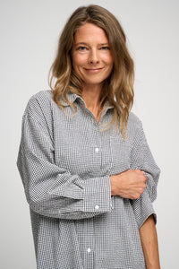 The shirt dress is made in the softest certified organic cotton seersucker fabric, in beautiful gingham check. The certification ensures organic origin and that the material is processed in an environmentally and socially responsible manner. Read more about our work selecting the best materials